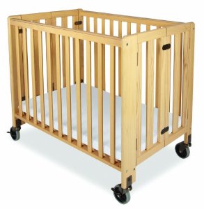 Cuna plegable, con lados fijos, tamaño full size, ruedas de 4". HideAway™ Natural