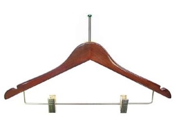 Gancho Hotelero Madera de Pino color caoba con barniz. Perno antirrobo. Caja con 100 pzas.