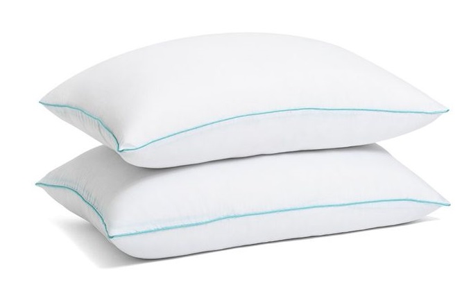 Almohada Hotelera ULTRA SUAVE Relleno Gel siliconizado Down Alternative Tela Exterior 100% Algodón con 500 Hilos. Con bies color azul cielo.