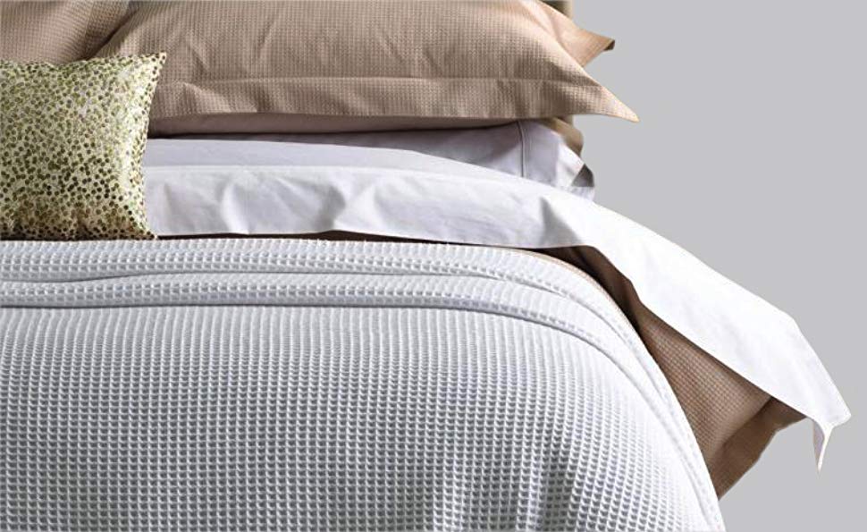 Colcha Hotelera de Noche en Waffle Color Blanca. Composición 60% Algodón / 40% Poliéster. Sin Forro.