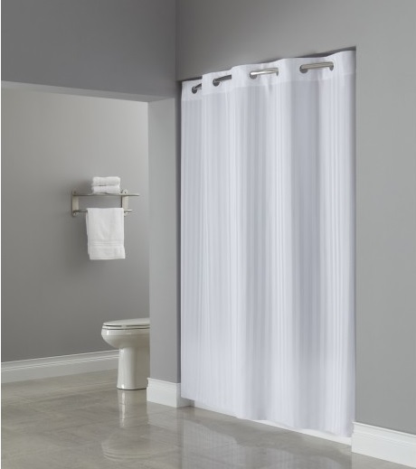 CORTINA DE BARRAS EN POLIESTER Con sistema HOOKLESS de 1.80 x 1.88, repelente al gua con antibacterial.