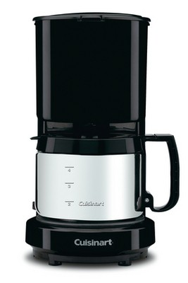 Cafetera marca Conair, color negro con jarra de acero inoxidable, capacidad para 4 tazas, utiliza filtros comericales, apagado automático, función pause y sirva. Venta en Multiplos de 6 pzas.