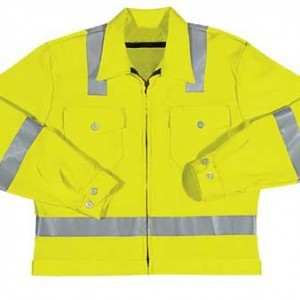 CHAMARRA DE SEGURIDAD NYLON Y POLIESTER CON UN COLOR FLUORESCENTE, REFLEJANTES EN MANGAS CINTURA Y HOMBROS.