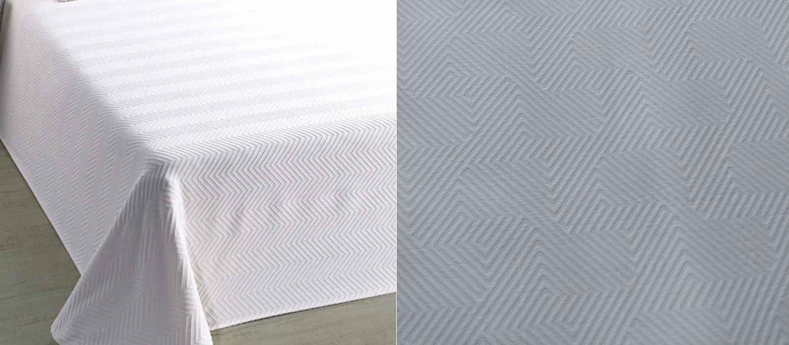 Colcha Hotelera MOD LABERINTO Color Blanca. Composición 100% Poliéster. Sin Forro.