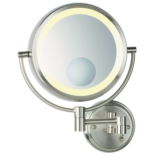 Espejo de vanidad con luz para pared Conair, acabado cromado, con aumento de 7X y 1X, brazo expandible a 12" diámetro de 8", aumento de espejo insertado 10X. Venta en Multiplos de 6 pzas.