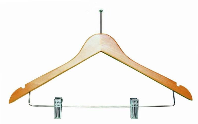 Gancho Hotelero Madera de Pino color natural con barniz. Perno antirrobo. Caja con 100 pzas. Con Pinzas
