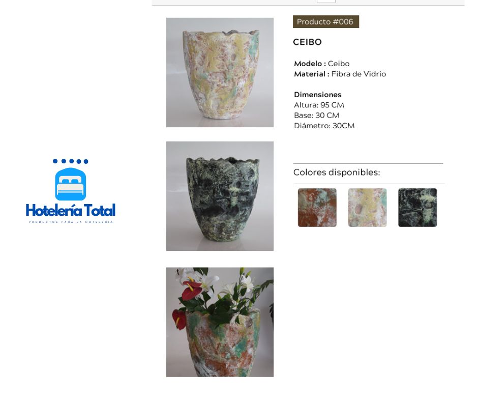 Producto #006 CEIBO Modelo : Ceibo Material : Fibra de Vidrio Dimensiones Altura: 95 CM Base: 30 CM Diámetro: 30CM