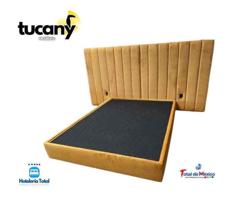 Con un diseño contemporáneo, tapizada, la cual puedes ser personalizada con la tela de tú elección.