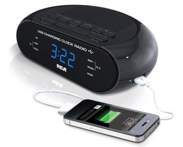 RADIO RELOJ DESPERTADOR -RCA - RADIO DESPERTADOR DE ALARMA DOBLE CON CARGA USB - NEGRO