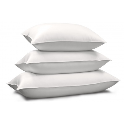 Almohada Hotelera ENCORE Fabricada en 3 compartimentos. Compartimento medular fibra rigida D7. Exteriores relleno fibra gel D1 (Down alternative) Peso