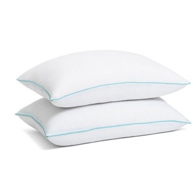 Almohada Hotelera ULTRA SUAVE Relleno Gel siliconizado Down Alternative Tela Exterior 100% Algodón con 500 Hilos. Con bies color azul cielo.