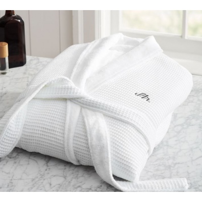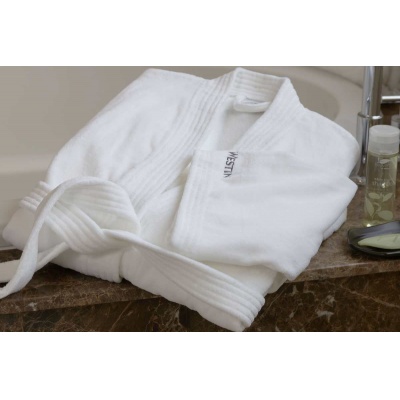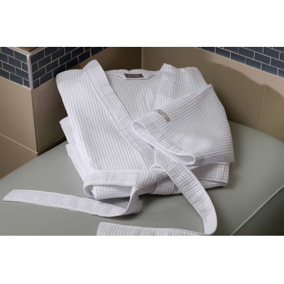 Bata para baño Tela Waffle 50% poliester / 50% algodon Color Blanca. Tipo Kimono.UnitallaXLXXL