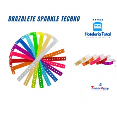 PLASTICO SPARKLEBrazalete de uso prolongado de material plástico mas otra capa de glitter y otra capa laminada brillante. El ideal