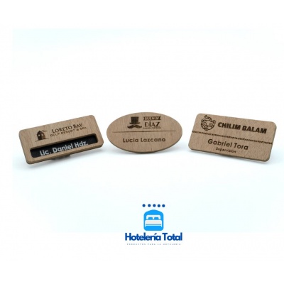 Gafetes de Madera + Broche de imán y/o alfilerEste gafete de madera es ideal si tu negocio está relacionado con