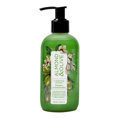Shampoo Acondicionador Almond and Olive 250ml. Botella Boston Masterbox de 36 piezas. 4043-L32