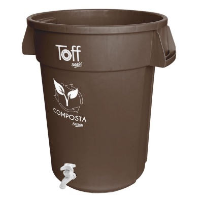 Modelo 9110COMBote redondo Toff 120L Café con llave de PVC para composta