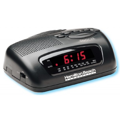 Radio AM/FM marca Hamilton Beach, color negro, números en pantalla LED, funciones snooze y sleep. MODELOHCR329MARCAHAMILTON BEACH