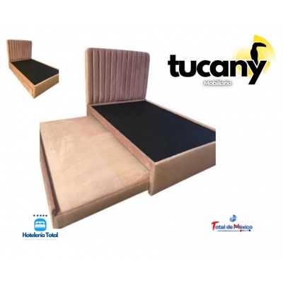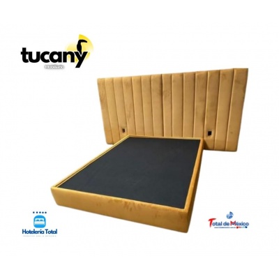 Con un diseño contemporáneo, tapizada, la cual puedes ser personalizada con la tela de tú elección.