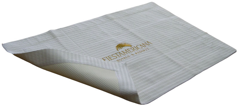 Tapete Dulces Sueños, tela waffle 50% Poliester / 50% Algodon color blanca. Medida 70 x 45 cms. con logotipo bordado al centro.